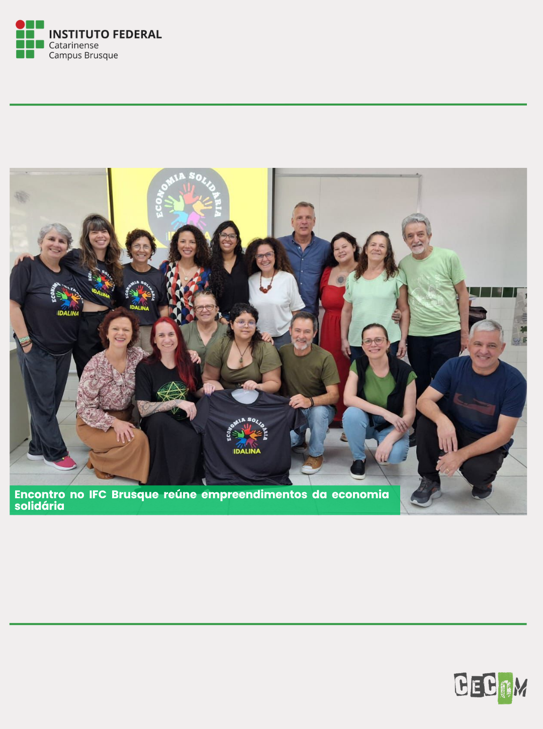 O Instituto Federal Catarinense (IFC) – Campus Brusque sediou, no dia 4 de outubro, o Workshop Economia Solidária voltado aos empreendimentos econômicos solidários.